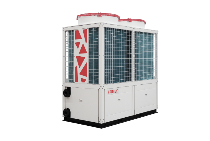 Capable of operating at ultra-low temperatures down to -30°C with robust heating performance, the Frimec ultra-low temperature air-cooled energy station integrates high-efficiency refrigerant system, high-efficiency water pump, and piping components into a single enclosure. Combined with the smart control module, this design enhances the overall energy efficiency of the air conditioning system. This design addresses the common issues associated with traditional central air conditioning systems, such as low energy efficiency, unclear responsibility delineation, large footprint, long installation cycles, and complex commissioning processes.