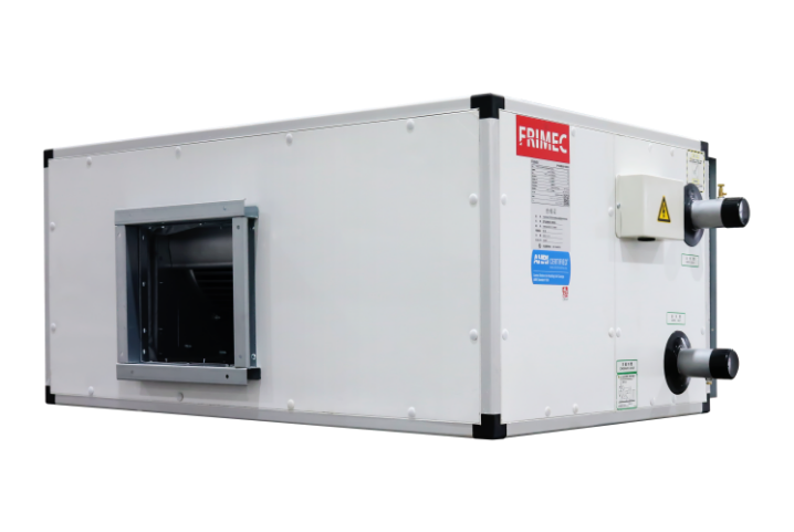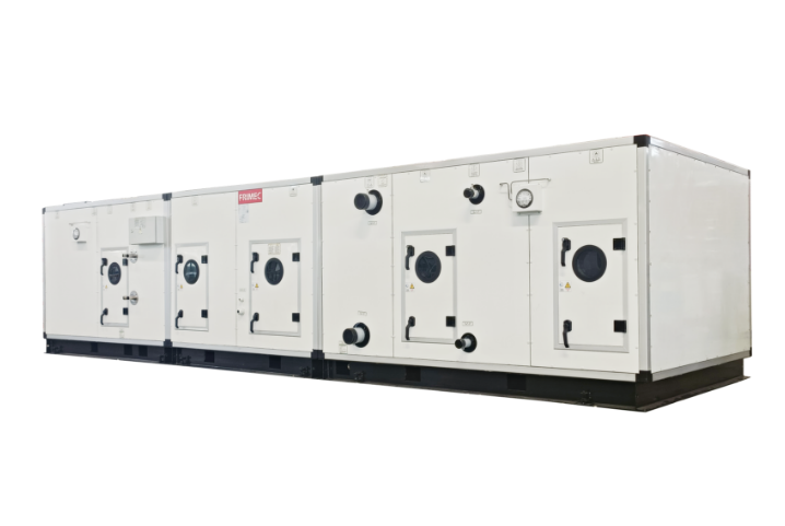 Frimec combined air handling units in the Comfort Series are compact, robust, and feature an aesthetically pleasing design that is both elegant and refined. The units are constructed with a cold bridge-breaking profile and double-sided foam board structure, which eliminates cold bridges, provides excellent sound insulation, and ensures high structural integrity. The unit features a lightweight design, facilitating easy installation of water pipes and electrical wiring. The Frimec air handling units are characterized by their ease of installation, low operational noise, high strength, and excellent heat exchange performance. Product Series: B Series - Direct Drive, C Series - Variable Speed, D Series - Belt Drive, S Series - Jet, E Series - Digital Energy Saving, F Series - Digital Jet Energy Saving, M Series - Single Wall.